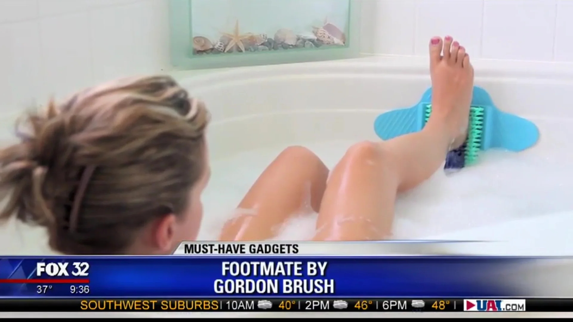 - Cleans/massages feet in shower